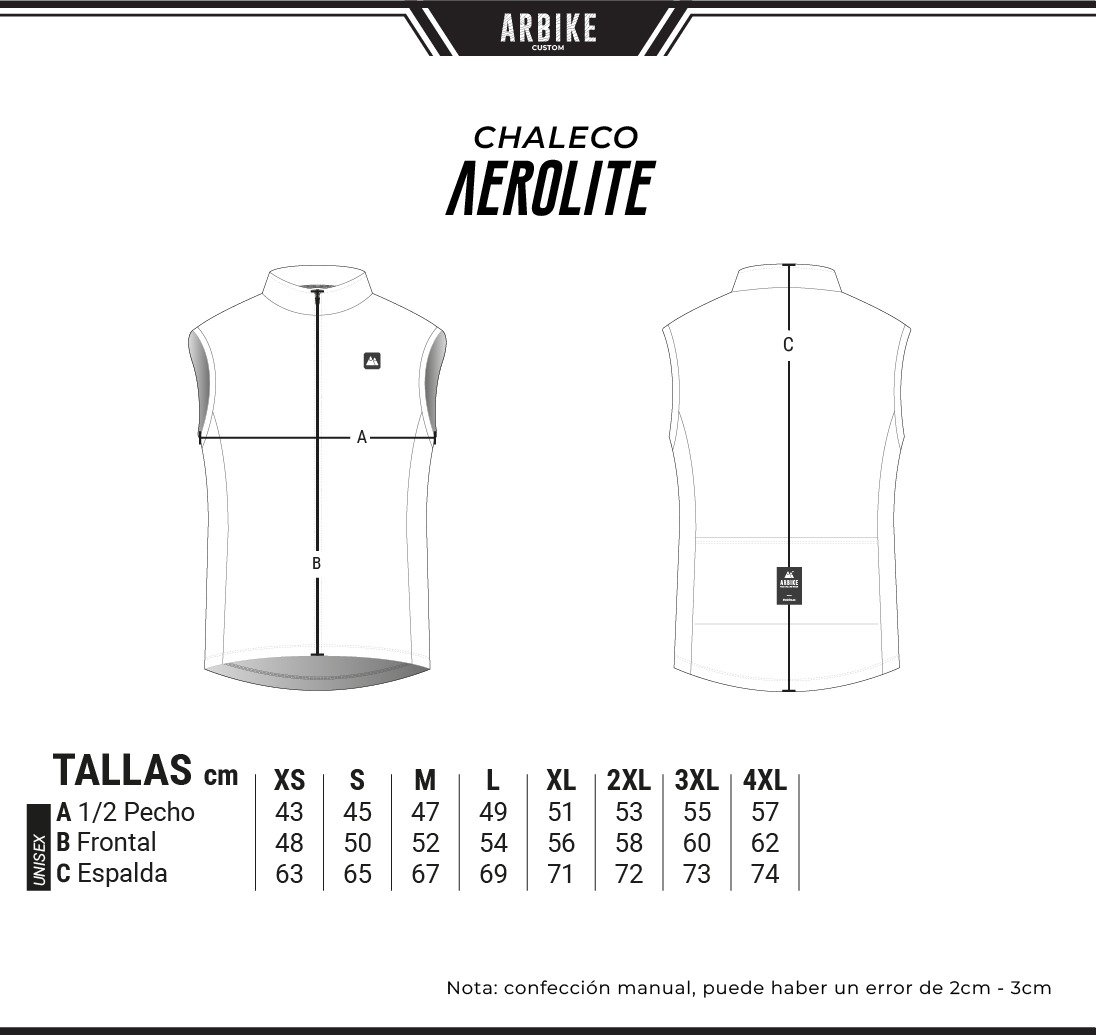 Para solicitar la devolución o cambio de talla puedes escribir a ventas@arbike.cc