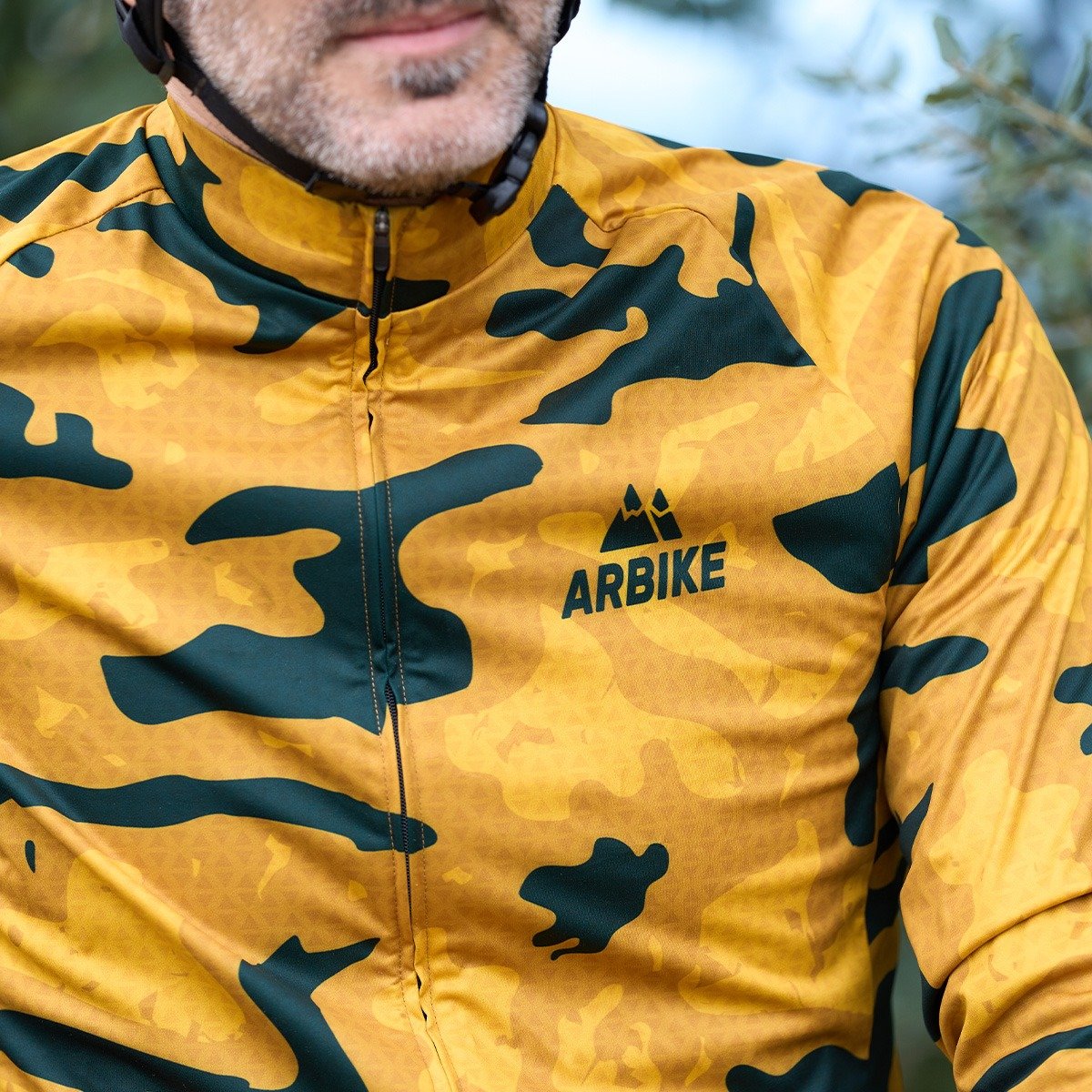 Chaqueta cortaviento camuflaje para ciclismo de carretera o gravel.