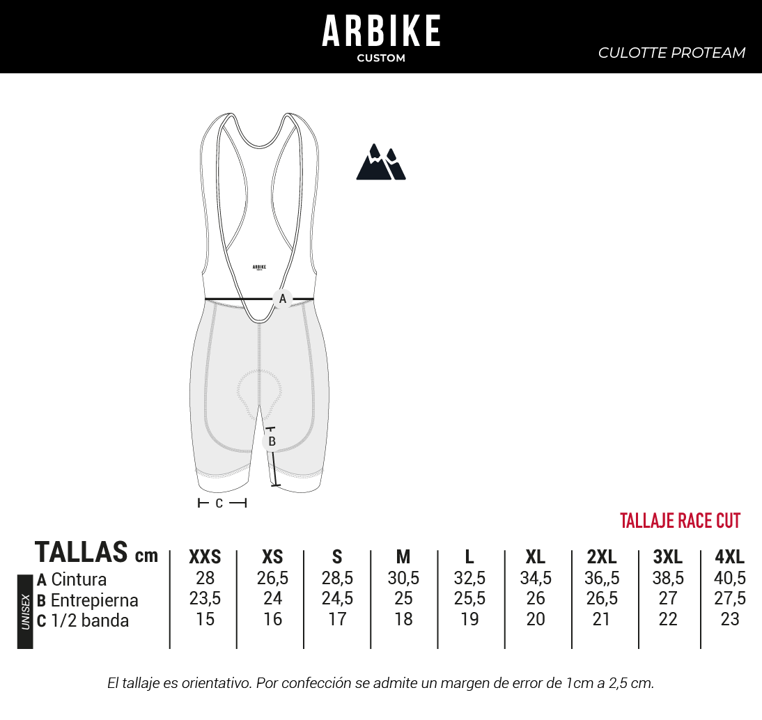 Máxima calidad, con el Culotte Pro Team puedes vestirte como un auténtico profesional. Utilizamos las mismas telas y calidades que un equipo de máxima categoría. Se ajusta perfectamente al cuerpo gracias a su patrón de competición y los tejidos de alta elasticidad.