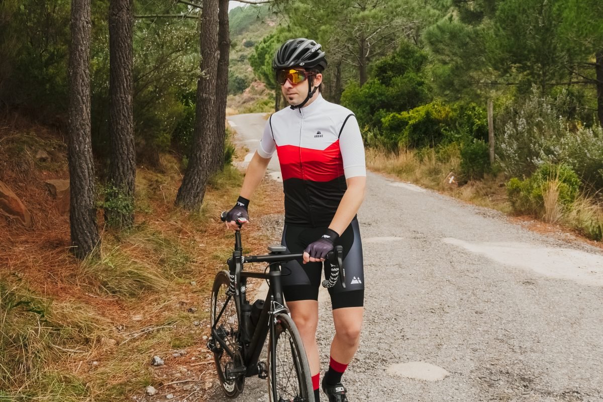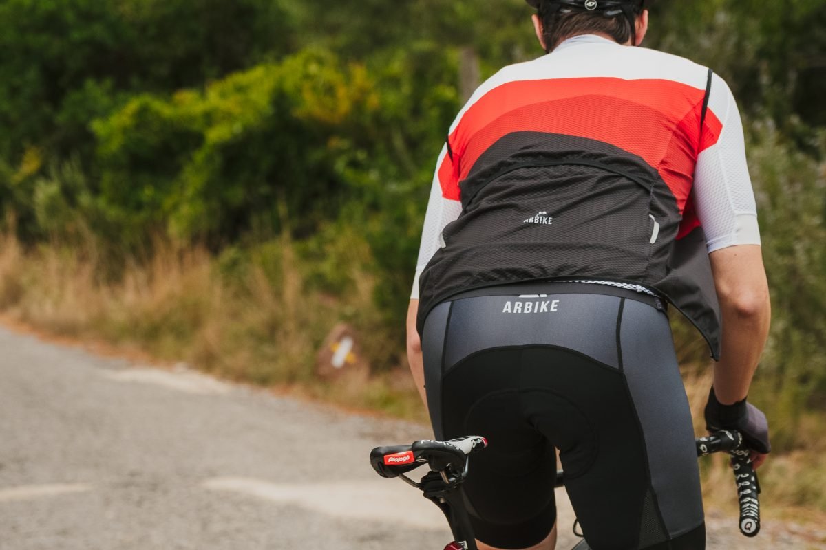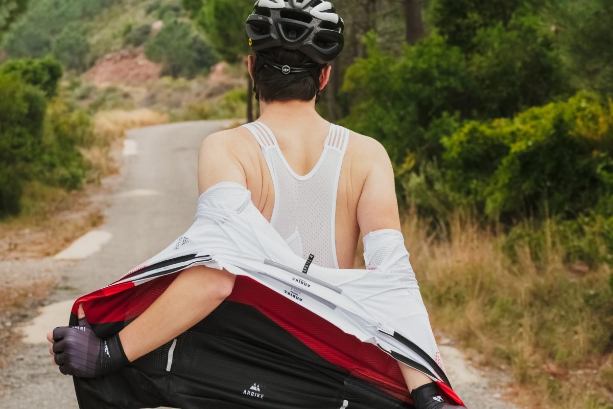 ciclista con equipación Arbike Ambassador Series ascendiendo el Stelvio – prendas de alto rendimiento