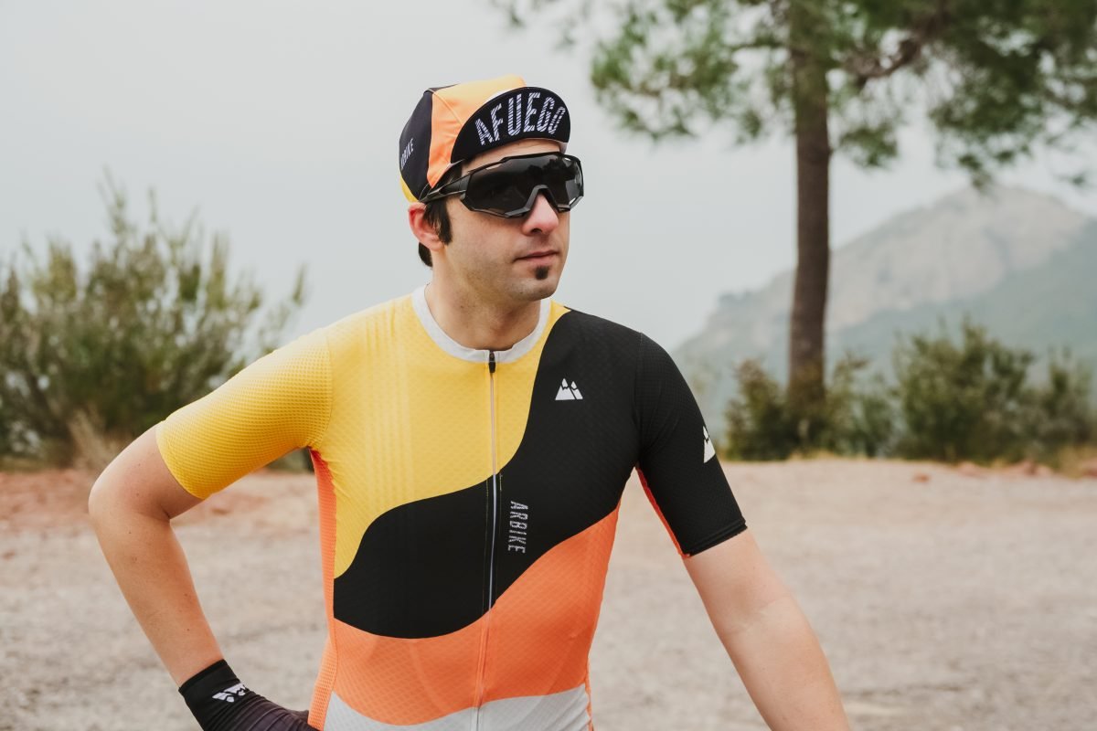 ciclista con equipación Arbike Ambassador Series ascendiendo el Stelvio – prendas de alto rendimiento