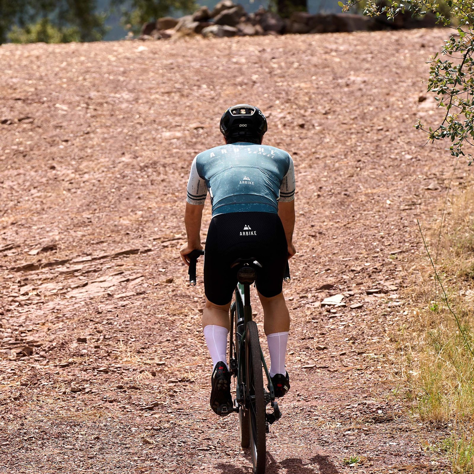 ciclista con equipación Arbike Ambassador Series ascendiendo el Stelvio – prendas de alto rendimiento