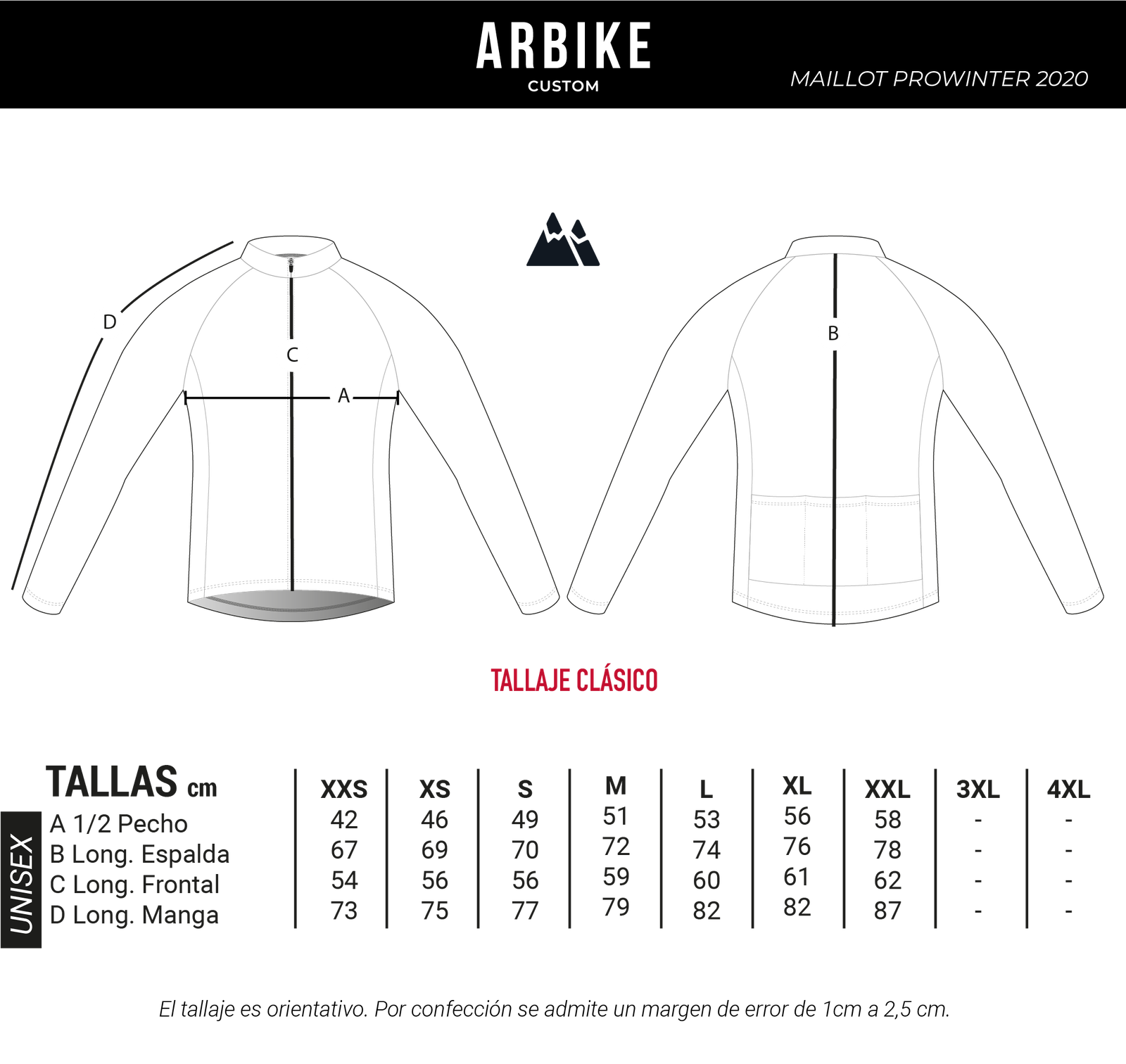 Nuestro maillot personalizado PRO WINTER se ajusta perfectamente al cuerpo gracias a su patrón ajustado y tejido térmico elástico. El maillot cuenta con cremallera invisible robusta y de alta calidad y tres bolsillos traseros reforzados en su parte interior.